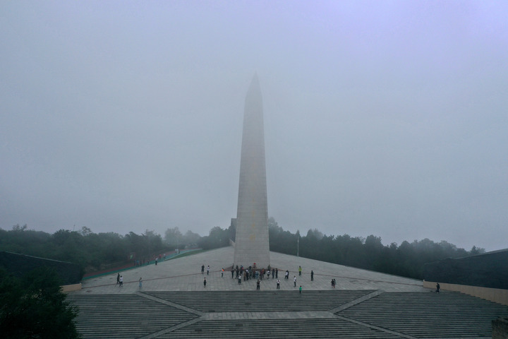 山西省阳泉市狮脑山顶峰,百团大战纪念碑如一把锋利的刺刀直插云霄,全国唯一以百团大战为主题的纪念馆坐落于此。作为全国爱国主义教育示范基地、全国红色旅游经典景区,这里每年吸引40余万游客前来参观。(新华社记者 詹彦)