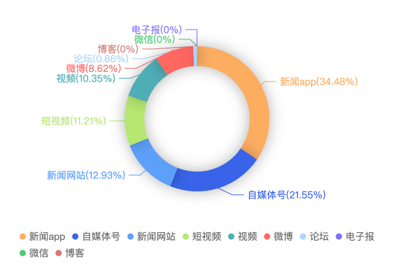 截至目前,该文章在互联网上传播总量共116篇。各信源的信息发布情况中,新闻app占比最大,其次是自媒体号。(数据来源:新华睿思·数媒智慧分析平台)