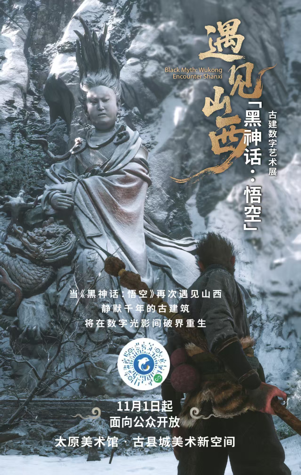 近日,由游戏科学官方授权的「黑神话:悟空」遇见山西——古建数字艺术展正式官宣,将于11月1日起在太原古县城与各位“天命人”见面。这是一个什么展?有何亮点?第一波探馆来了,超多内容先睹为快。