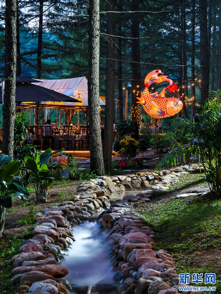潺潺溪流穿林而过,漫步其间,感受灯火阑珊处的诗意与宁静。新华网 发