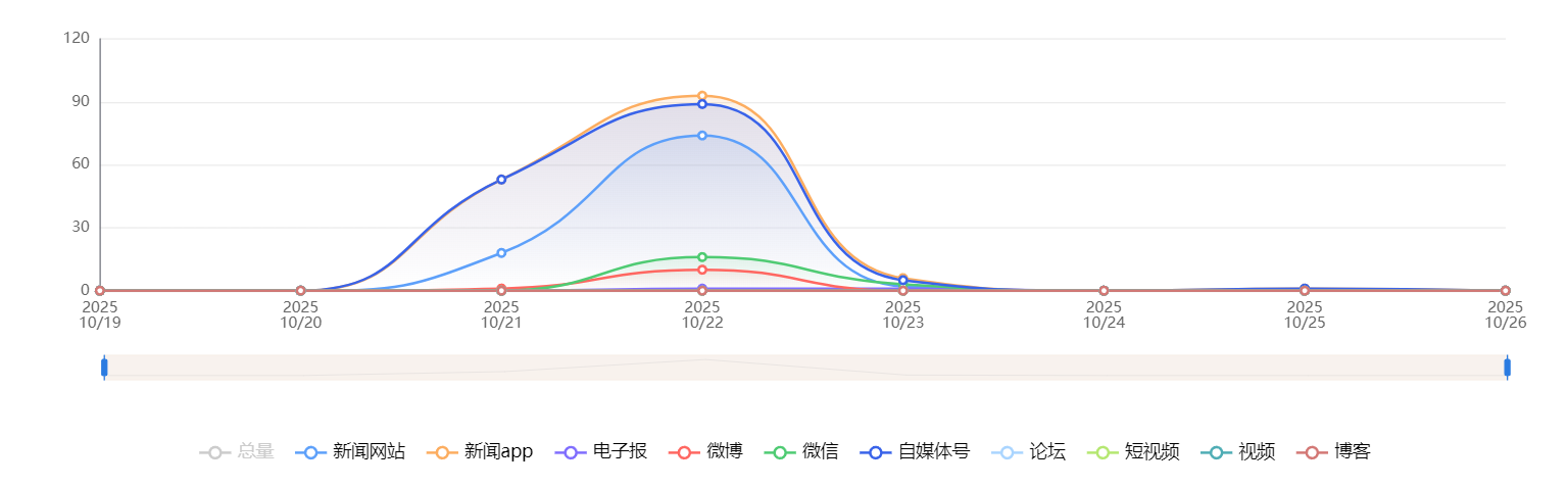 截至目前,该文章在互联网上传播总量共112篇。各信源的信息发布情况中,新闻app占比最高,其次是自媒体号。(数据来源:新华睿思数据云图分析平台)