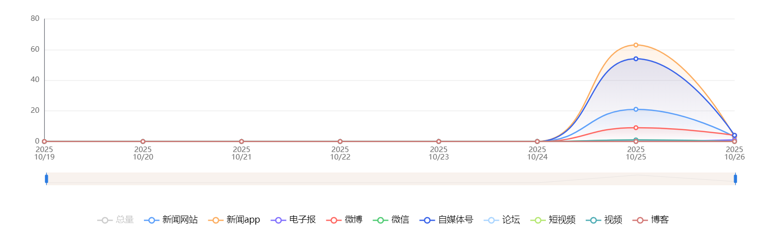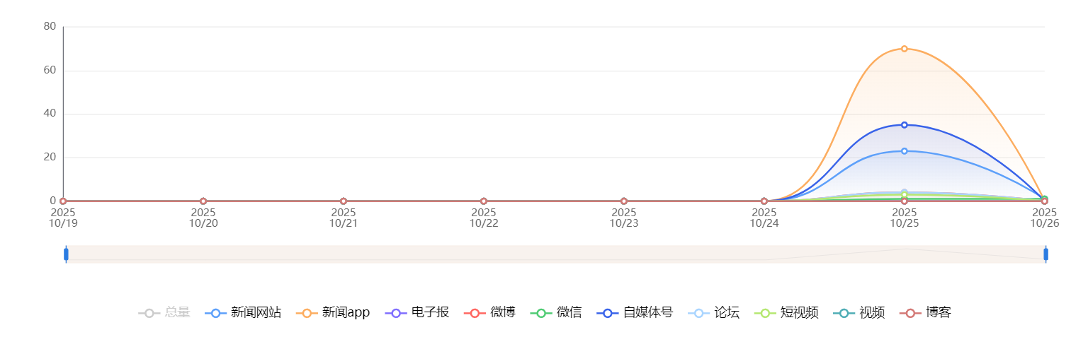 截至目前,该文章在互联网上传播总量共164篇。各信源的信息发布情况中,新闻app占比最高,其次是自媒体号。(数据来源:新华睿思数据云图分析平台)