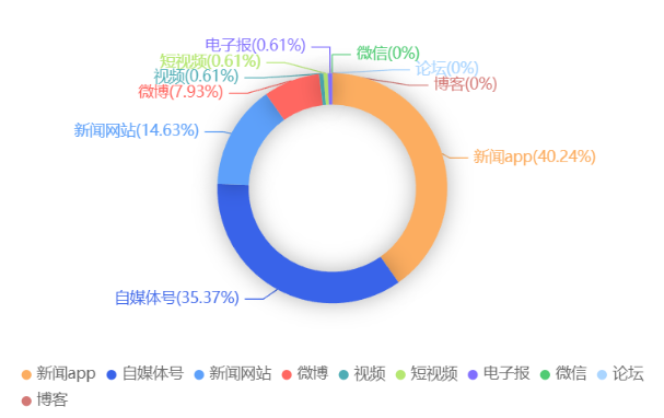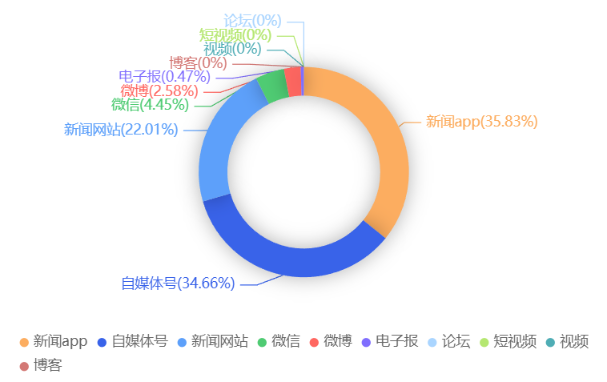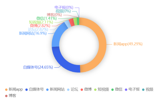 截至目前,该文章在互联网上传播总量共159篇。各信源的信息发布情况中,新闻app和自媒体号占比最高,其次是新闻网站。(数据来源:新华睿思数据云图分析平台)