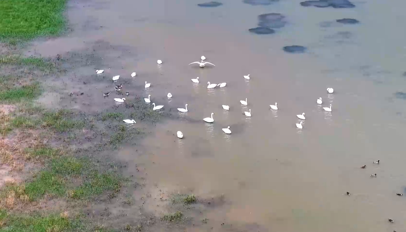 近日,位于山西省南部的平陆县黄河湿地迎来首批越冬白天鹅。白天鹅在水面嬉戏玩闹,黄河湿地变成了美丽的“天鹅湖”。(作者:詹彦 权永军)