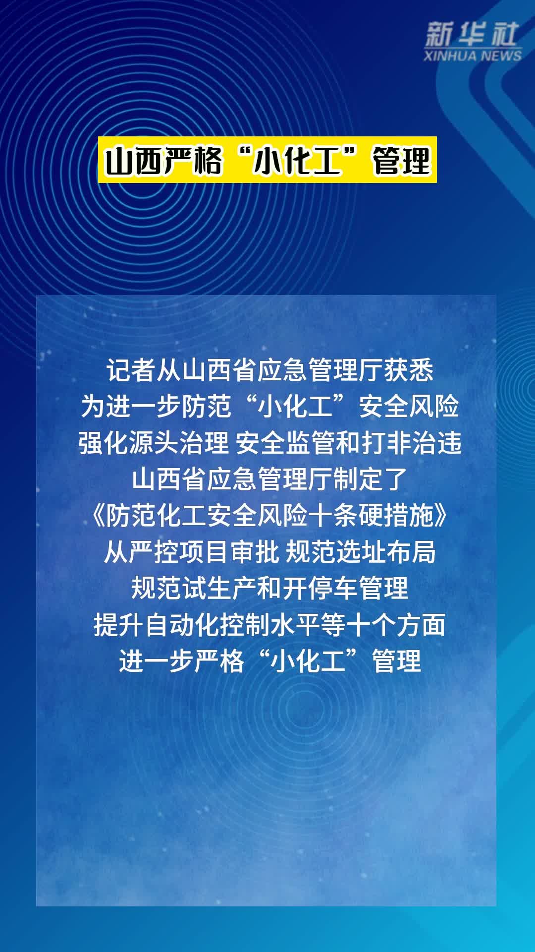 记者从山西省应急管理厅获悉,为进一步防范“小化工”安全风险,强化源头治理、安全监管和打非治违,山西省应急管理厅制定了《防范化工安全风险十条硬措施》,从严控项目审批、规范选址布局、规范试生产和开停车管理、提升自动化控制水平等十个方面,进一步严格“小化工”管理。(新华社记者王劲玉)
