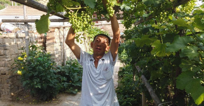 农户高换存在打理自家种的葡萄树。 (张向荣 摄)