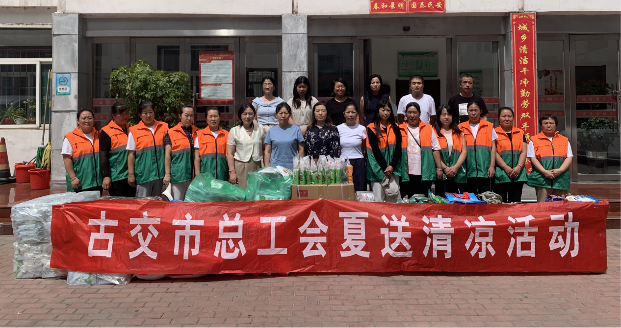 慰问组先后前往古交市市政环卫服务中心、园林绿化中心、森林草原防火预警监测中心、消防大队、公安局、交警大队、古交市百灵鸟供应链管理有限公司,以及森林火灾高风险区综合治理、太原万和园林酒店等15个重点工程建设项目工地,为一线职工送上防暑降温物资,向奋战在烈日下的园林环卫工人、交警、森林消防员、快递员、建筑工人等表达关怀。