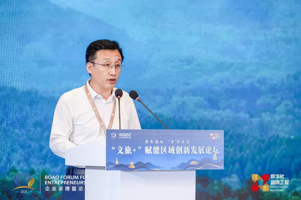 新华网太原12月5日电(王亮 赵睿)“南海之滨,我们共叙发展;吕梁山上,离石静候君临。”12月5日,在海南省琼海市博鳌镇举行的2025企业家博鳌论坛“康养福地 ‘晋’享未来——‘文旅 ’赋能区域创新发展论坛”上,山西省吕梁市离石区委常委、宣传部部长刘继忠讲述了资源型地区以文旅破题转型的生动实践和以融合驱动城乡共富的发展路径,并诚挚邀请各界人士走进离石,感受这里的山河气韵、人文温度与创新脉搏。