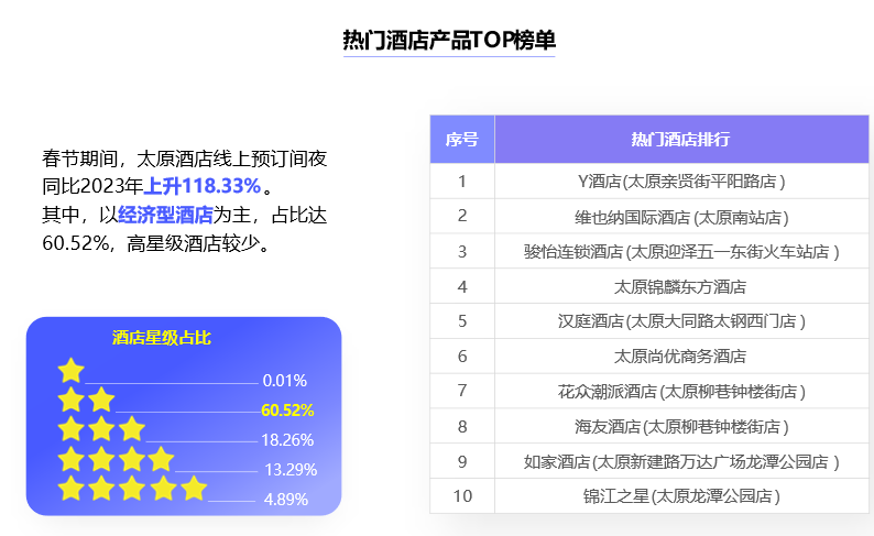2024年春节假期太原市热门酒店产品top榜单。新华网 发