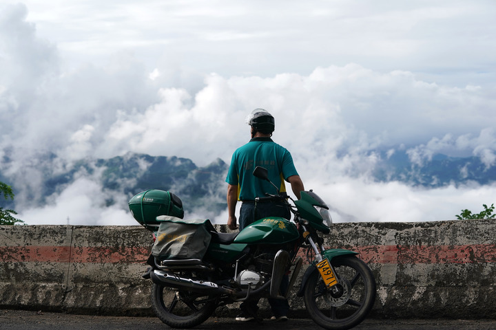 时隔多年,我再次来到这片土地,在太行山大峡谷旅游循环公路上,见到了正在送件的赵月芳。随着交通条件的改善,大路通了,赵月芳再也不用沿着崎岖的“猫路”下山了,当地邮政部门还为他配备了新的送件工具——邮政摩托车。