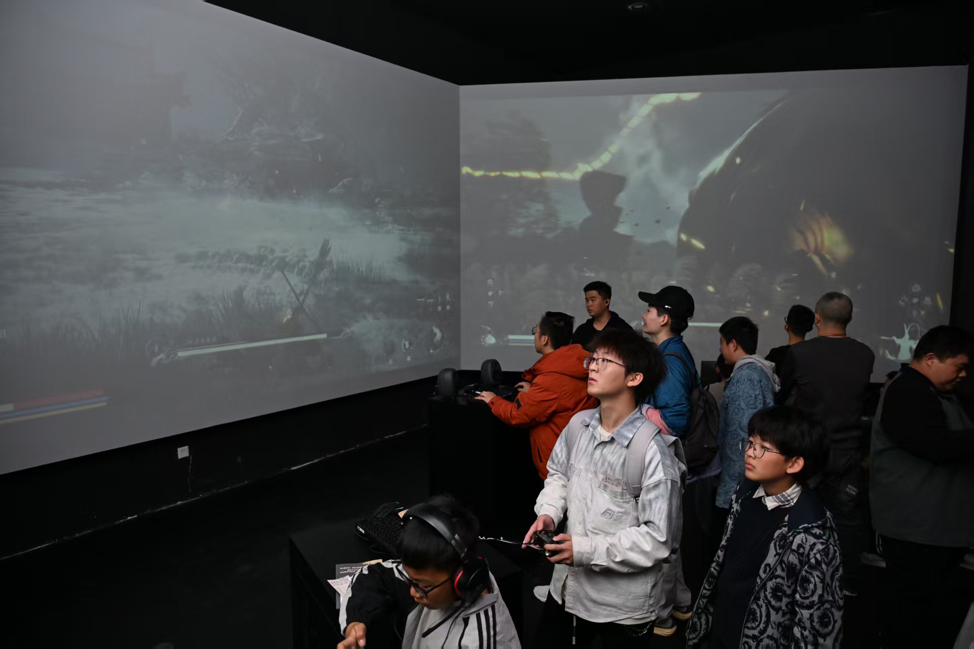 11月1日,位于太原古县城的「黑神话:悟空」遇见山西——古建数字艺术展迎来首波游客。大家或驻足细品古建之美,或与数字光影奇妙互动,或拿出手机与高度还原的游戏场景合影,或在游戏体验区与boss激烈对决……