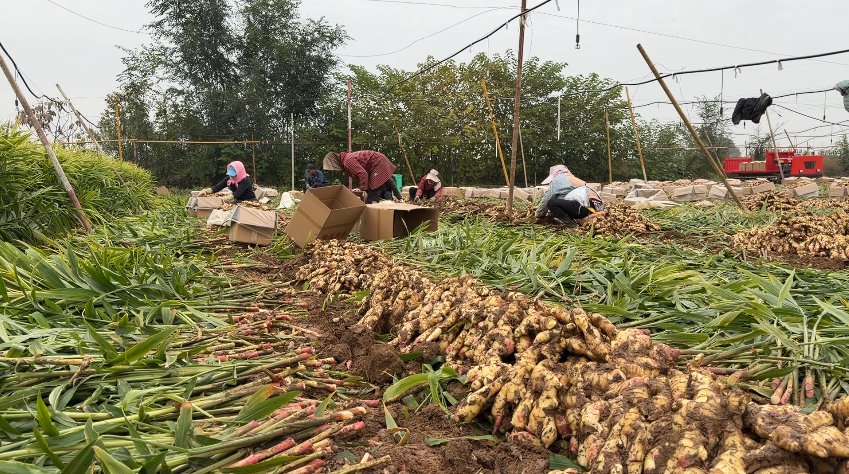 近期,走进临汾市曲沃县北董乡生姜种植基地,可以看到工人们正在有序进行松土、拔姜、抖泥、摆放、分离根茎、装箱、上车等一系列工作。