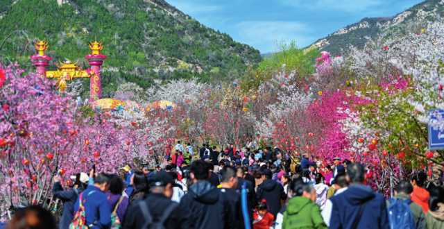 游客在太原市玉泉山城郊森林公园 观赏樱花(2023 年 4 月 8 日摄) 杨晨光摄 / 本刊