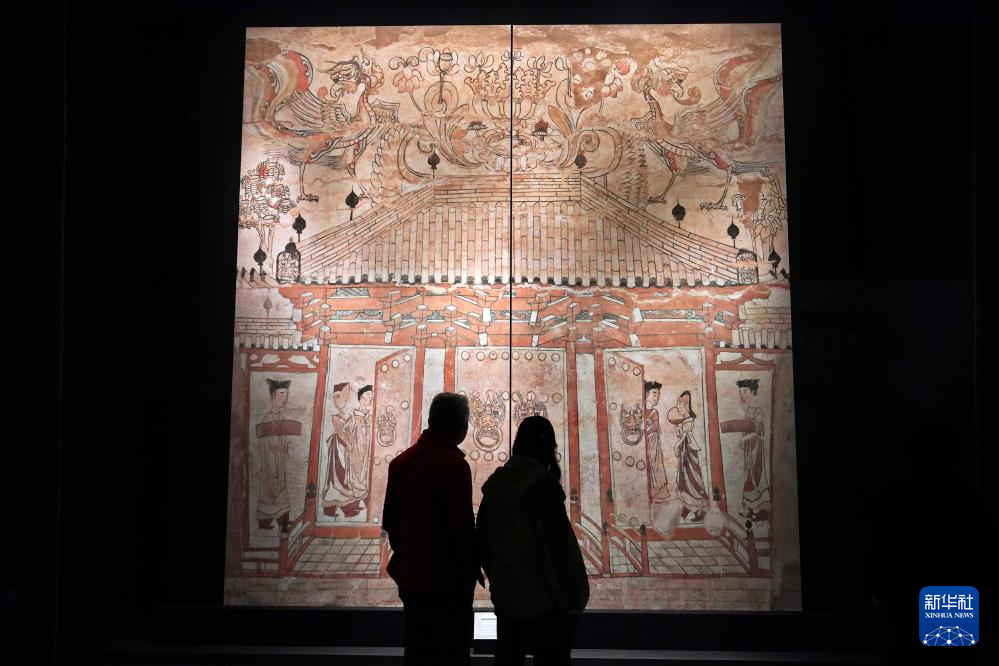 参观者在太原北齐壁画博物馆欣赏壁画(2024年3月21日摄)。新华社记者詹彦 摄