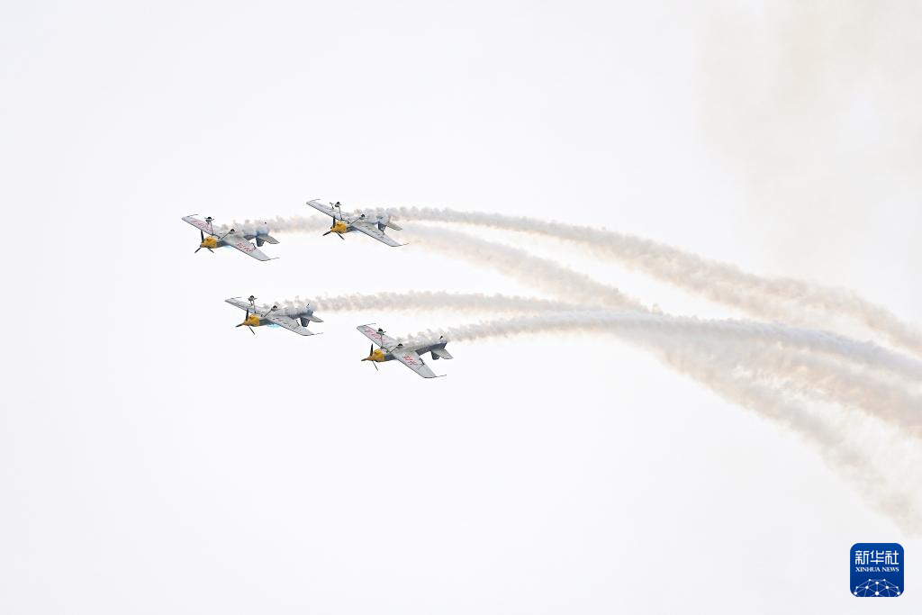 2023年9月28日,特技飞行表演队在2023太原国际通用航空博览会上表演。新华社记者杨晨光 摄