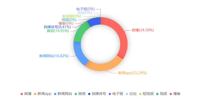 截至目前,该文章在互联网上传播总量共107篇。各信源的信息发布情况中,微博占比最大,其次是新闻app。(数据来源:新华睿思·数媒智慧分析平台)