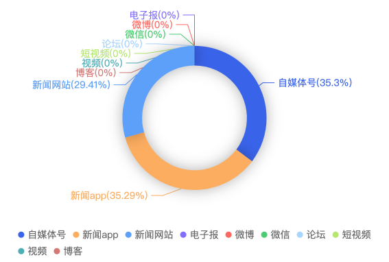 截至目前,该文章在互联网上传播总量共34篇。各信源的信息发布情况中,自媒体号占比最大,其次是新闻app。(数据来源:新华睿思·数媒智慧分析平台)