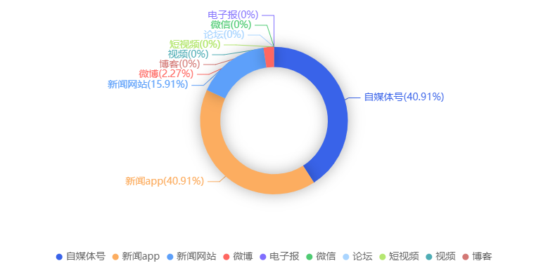 截至目前,该文章在互联网上传播总量共44篇。各信源的信息发布情况中,自媒体号和新闻app占比最大,其次是新闻网站。(数据来源:新华睿思·数媒智慧分析平台)