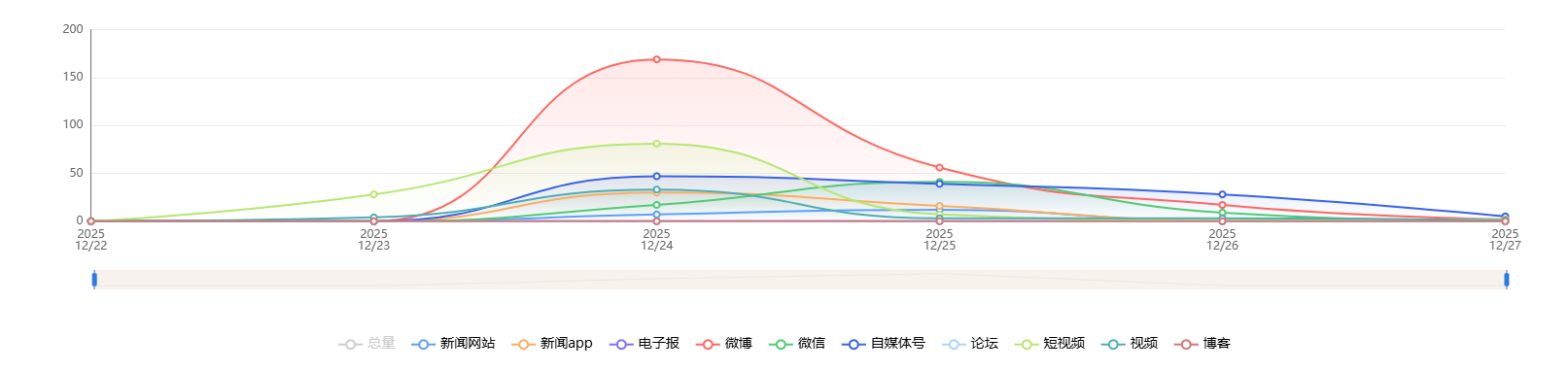 截至目前,该文章在互联网上传播总量共161篇。各信源的信息发布情况中,短视频占比最大,其次是自媒体号。(数据来源:新华睿思·数媒智慧分析平台)