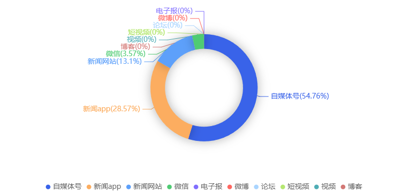 截至目前,该文章在互联网上传播总量共84篇。各信源的信息发布情况中,自媒体号占比最大,其次是新闻app。(数据来源:新华睿思·数媒智慧分析平台)