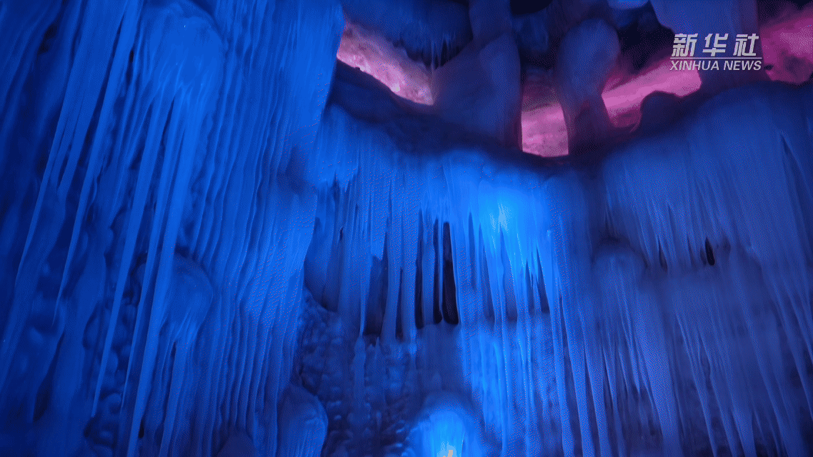 “万年冰洞”位于山西省宁武县芦芽山麻地沟内,海拔约2300米,大约形成于新生代第四纪冰川期。宁武夏天气温最高时可以达到38摄氏度,但是“万年冰洞”内却常年保持在零摄氏度以下低温。(新华社记者樊欣阳、徐伟)