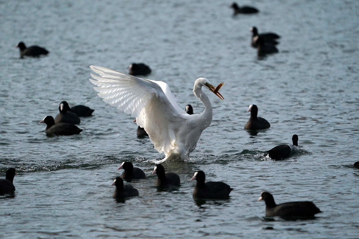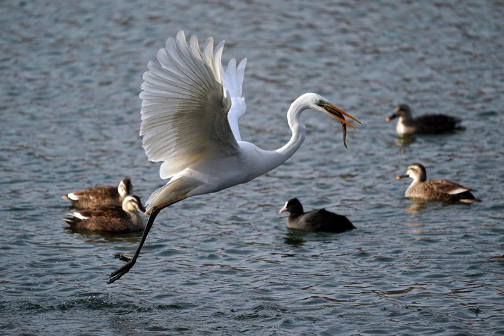 时下,成群的白鹭在汾河太原段休憩、觅食,成为一道靓丽的风景。汾河是黄河第二大支流,被称为山西的母亲河。近年来,山西持续加大生态保护力度,环境质量不断改善,为鸟类的繁衍生息提供了良好的生态空间和栖息环境。(新华社记者詹彦)
