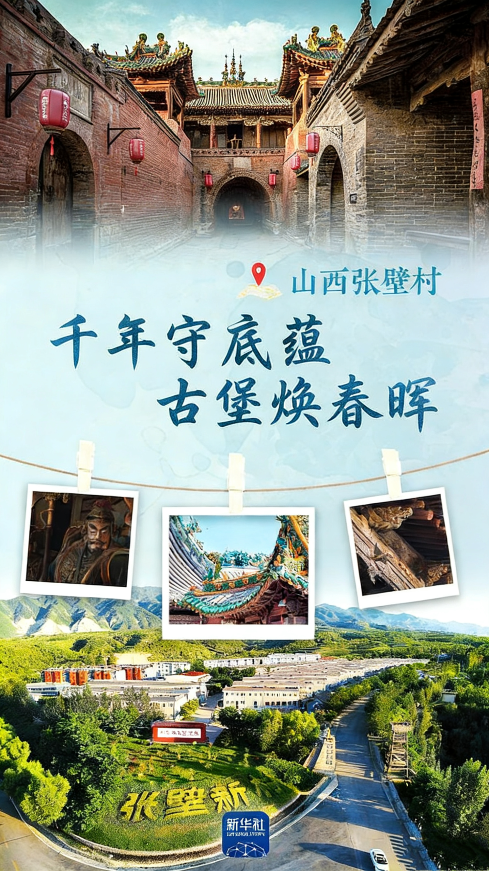 每天清晨,村民们在张壁新村醒来,前往不远处的古堡,开启新一天的忙碌。这一派欣欣向荣的景象,向世人展示着这座传统村落生生不息的鲜活图景。(海报设计:刘澈)