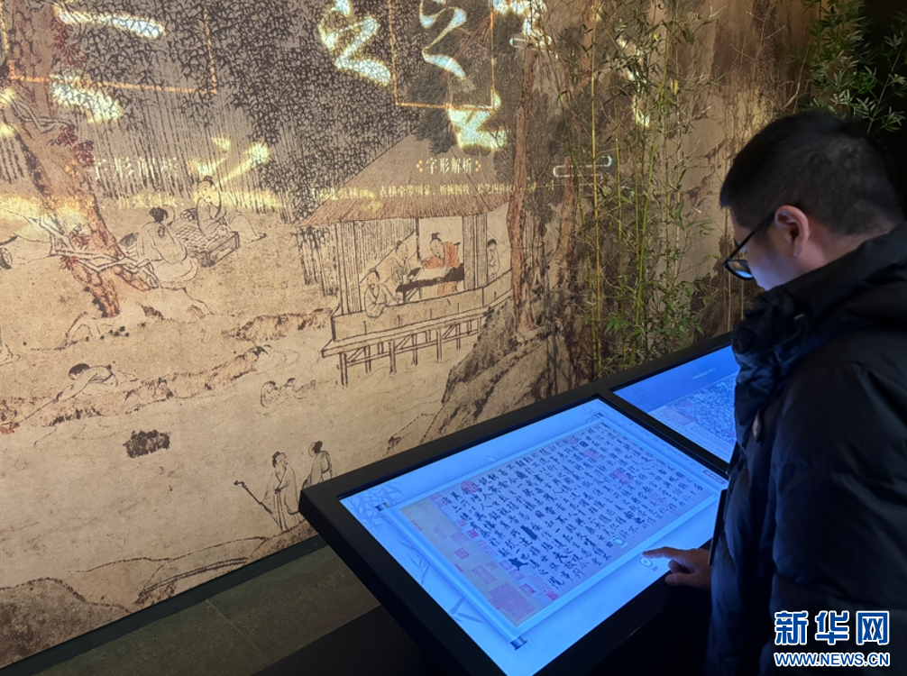 游客体验“同源异流 兰亭序‘之’字互动”项目。新华网 发