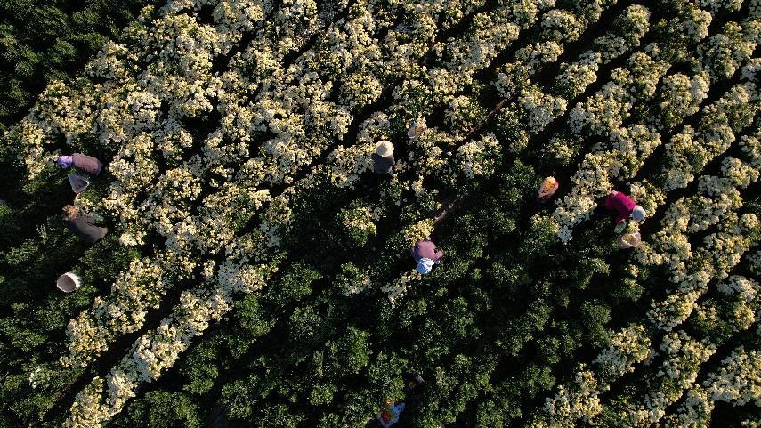 菊花采摘现场。(张向荣 摄)
