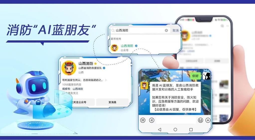 山西省消防救援总队创新推出“山西消防ai蓝朋友”正式上线。该ai系统依托deepseek大模型结合权威消防知识库创建而成,旨在进一步提升山西消防宣传服务水平, 打造智慧化便民服务体系。网友可以通过“山西消防”微信公众号,24小时在线咨询消防疑问,“一键获取”消防安全知识。